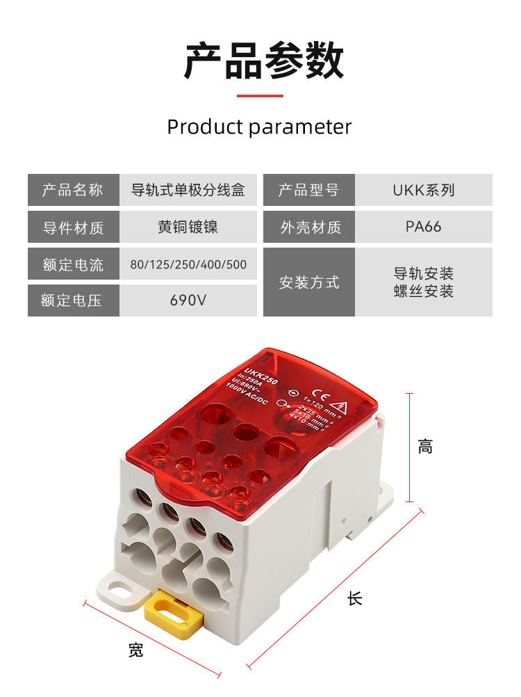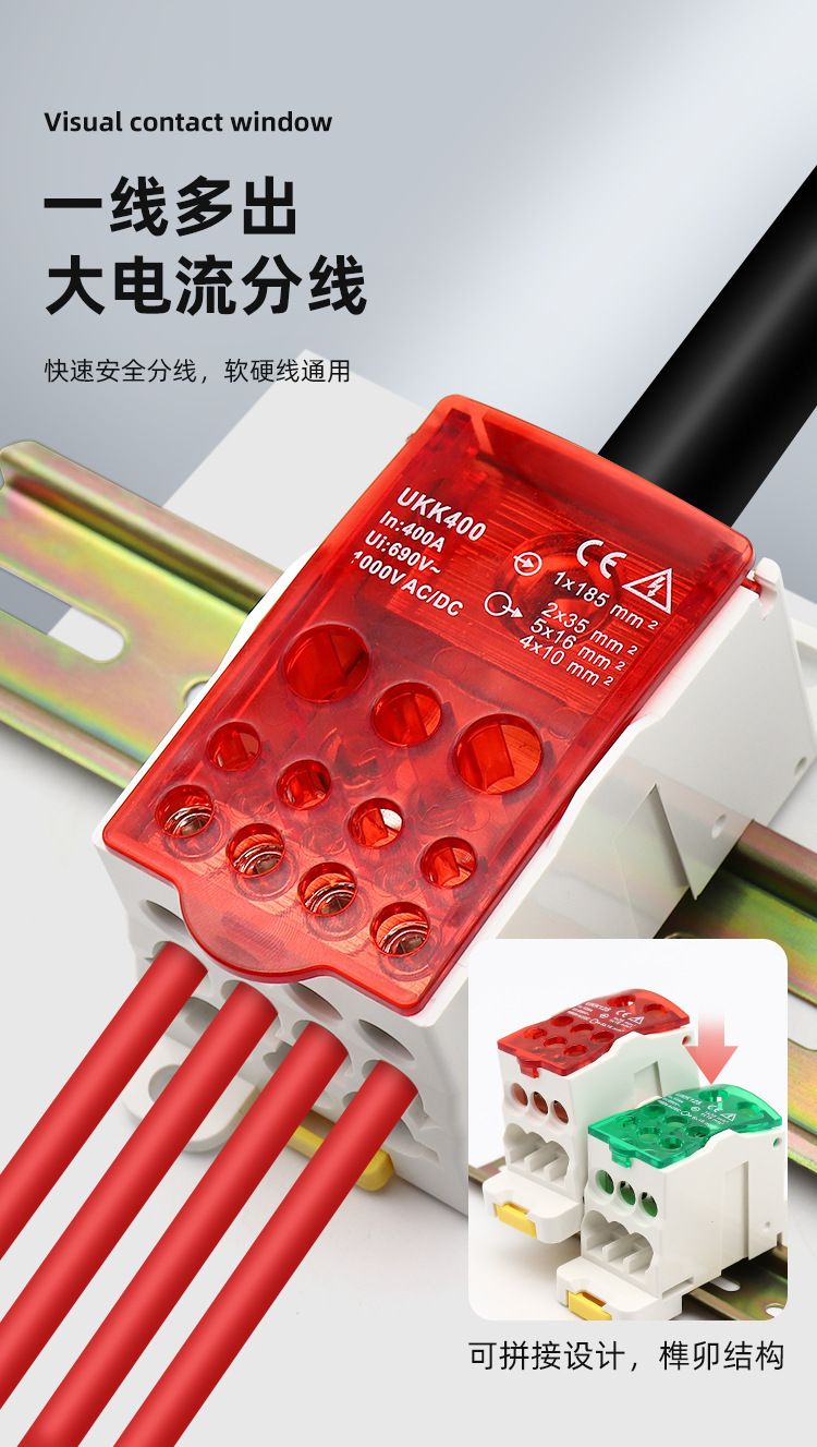 一进多出导轨式分线盒UKK80A125A160A250A400A500A接线端子接线盒