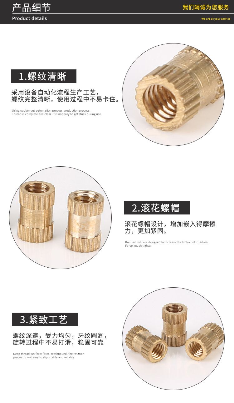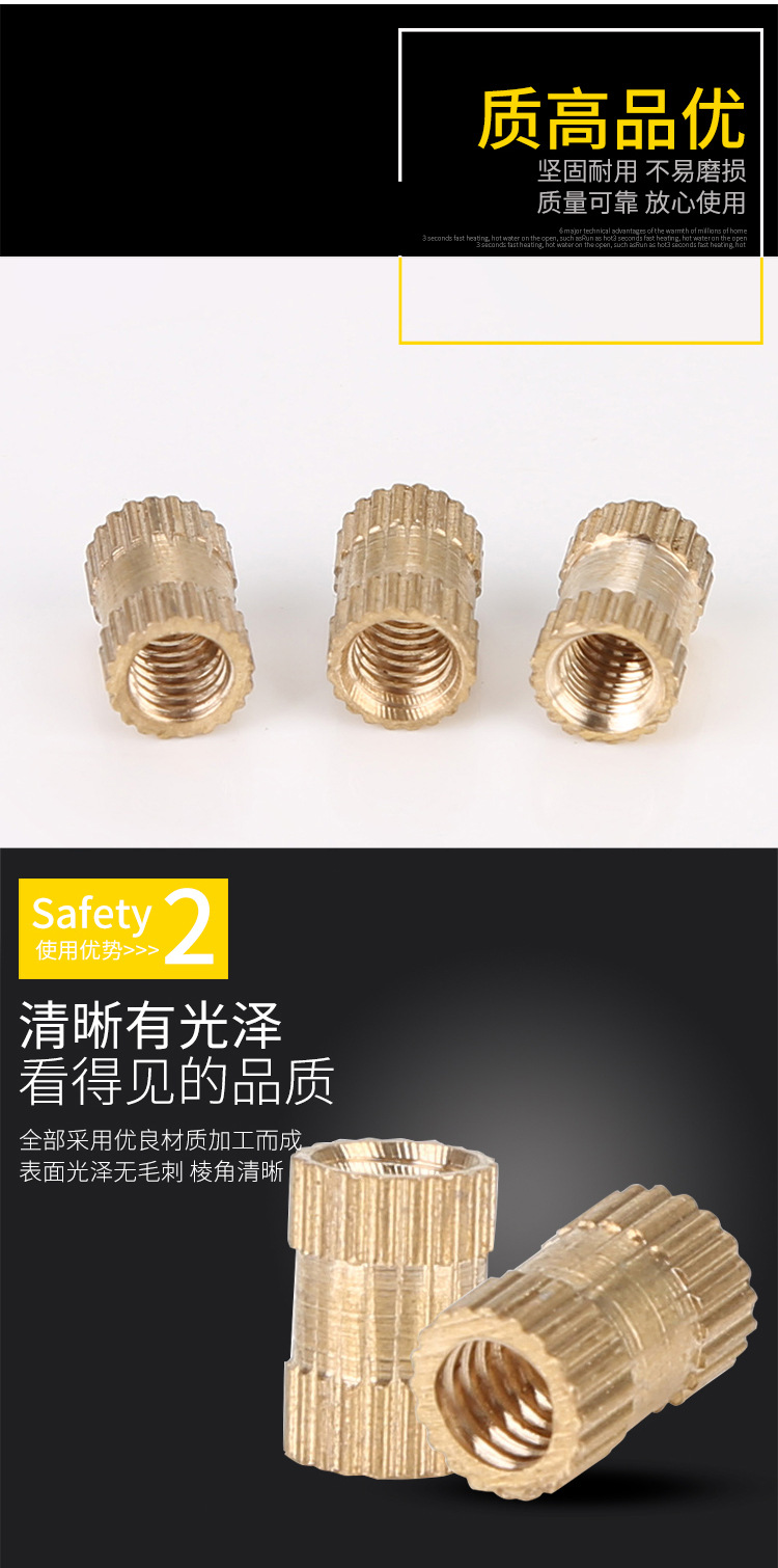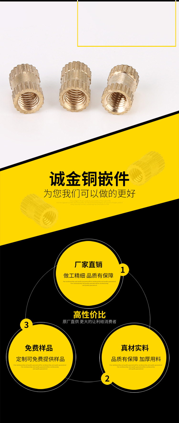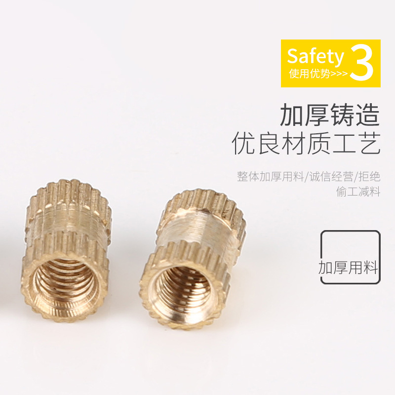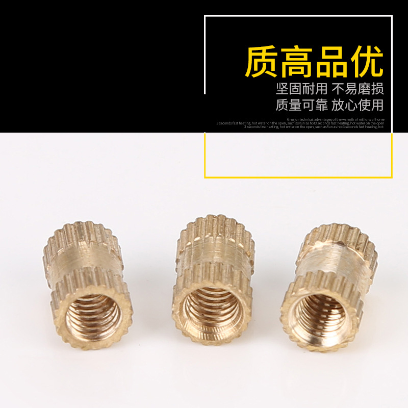 现货厂家直销M8系列注塑螺母预埋件网纹出口本色铜嵌件卡件铜镶件