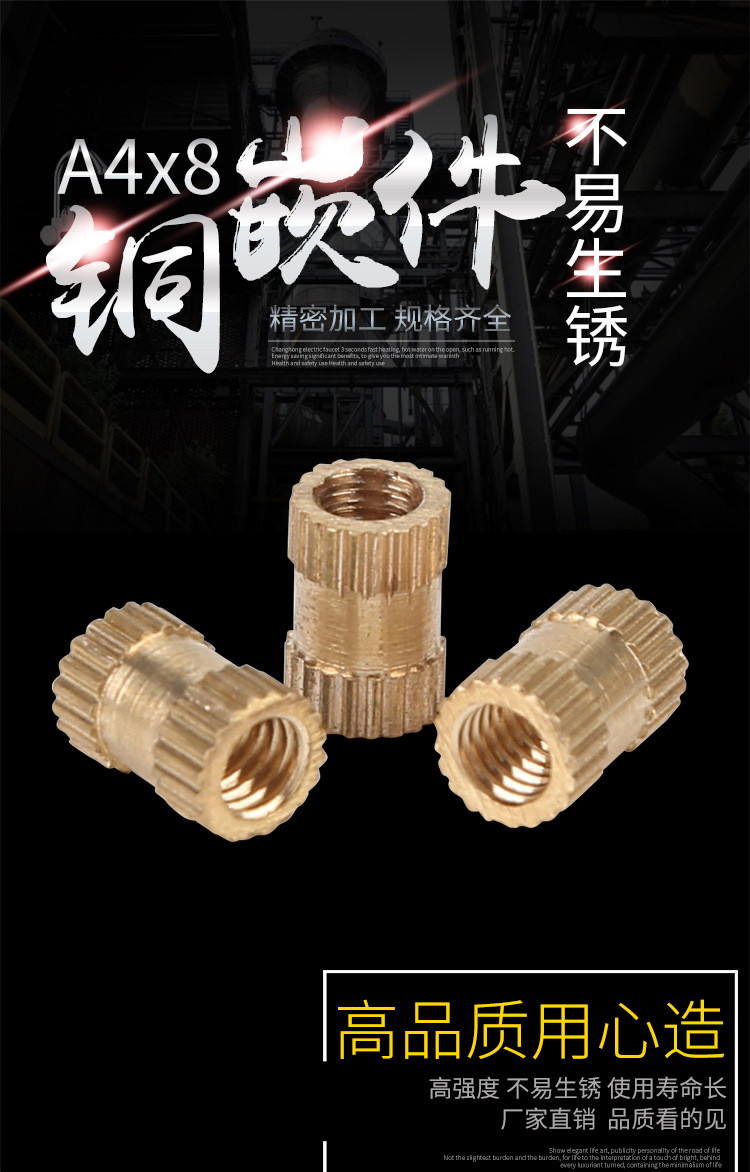 厂价供应 铜嵌件A4x10 滚花铜螺母铜卡件铜嵌件注塑铜螺母 铜镶件