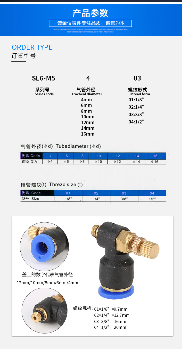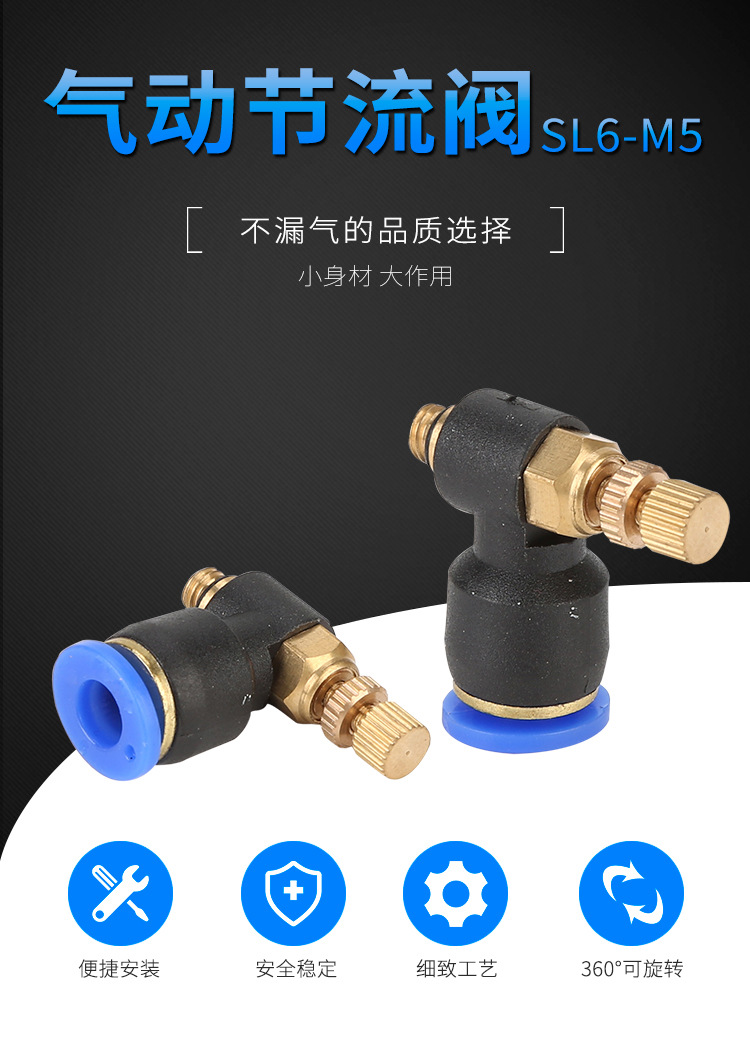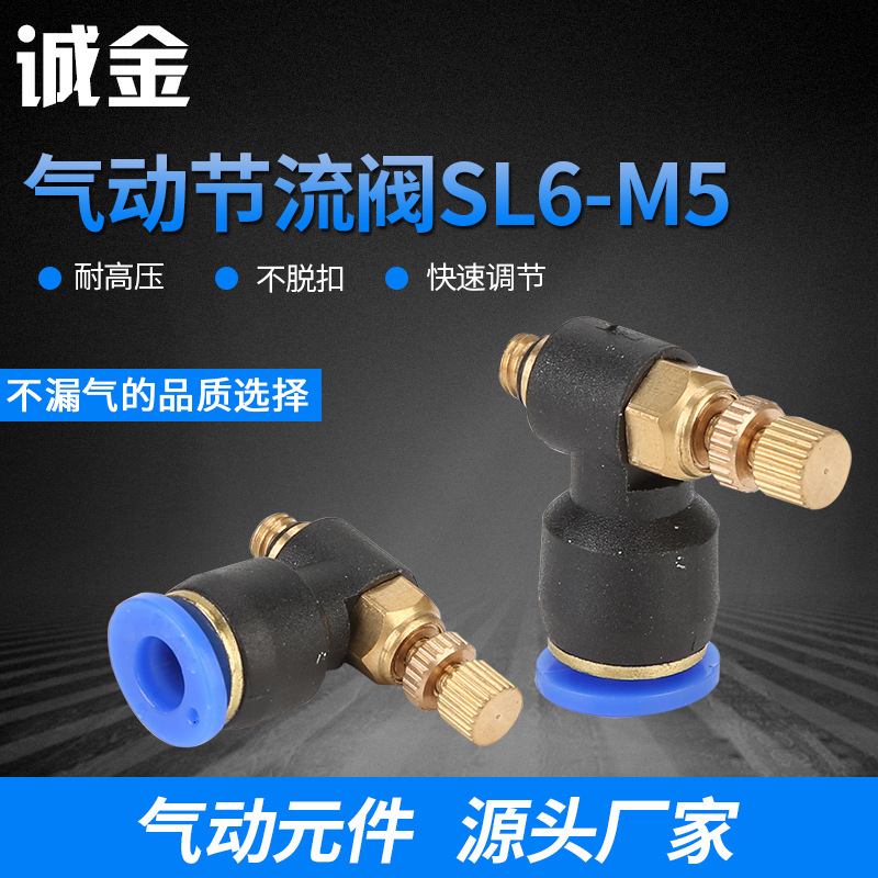 气动节流阀SL4- SL6-M5 气动气管接头快速快插塑料接头螺纹弯头