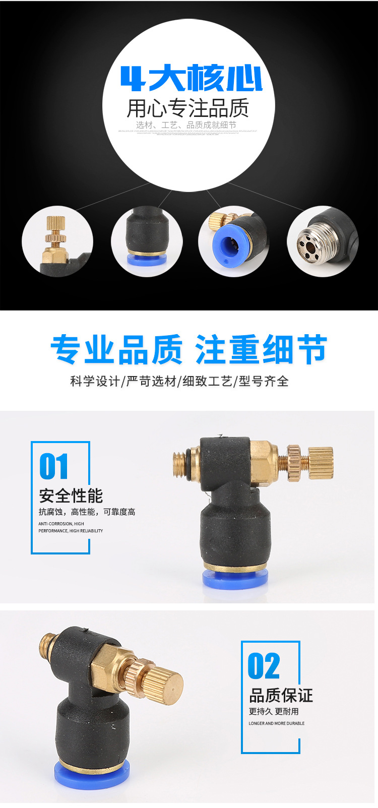 厂家供应 节流阀LSC-01 气动气管接头快速快插塑料接头螺纹弯头