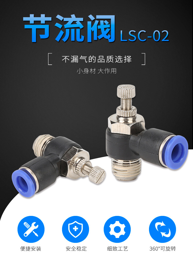 厂家供应 节流阀LSC-02 气动气管接头快速快插塑料接头螺纹弯头