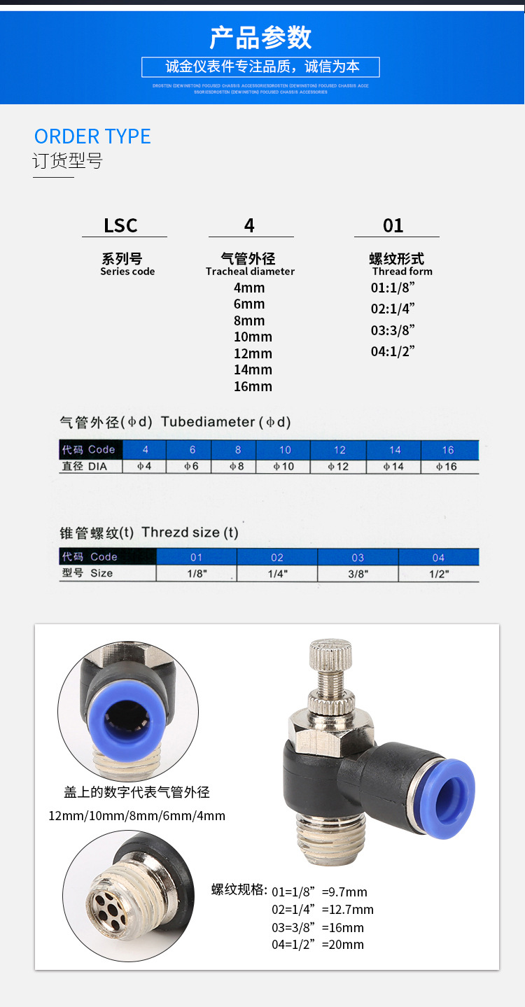 厂家供应 节流阀LSC-01 气动气管接头快速快插塑料接头螺纹弯头
