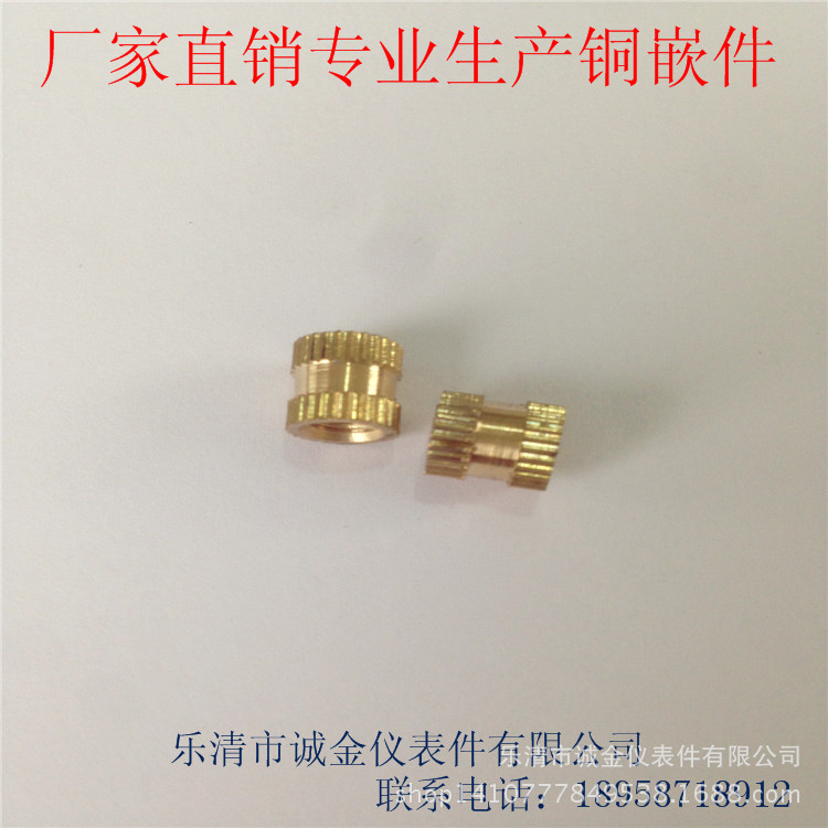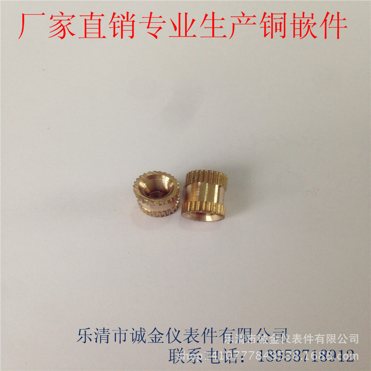1、电话、旺旺咨询。把你们需要铜嵌件的图纸发给我们,我们会根据你们的要求定制尺寸、精度等。(无图纸我们会根据标准生产)