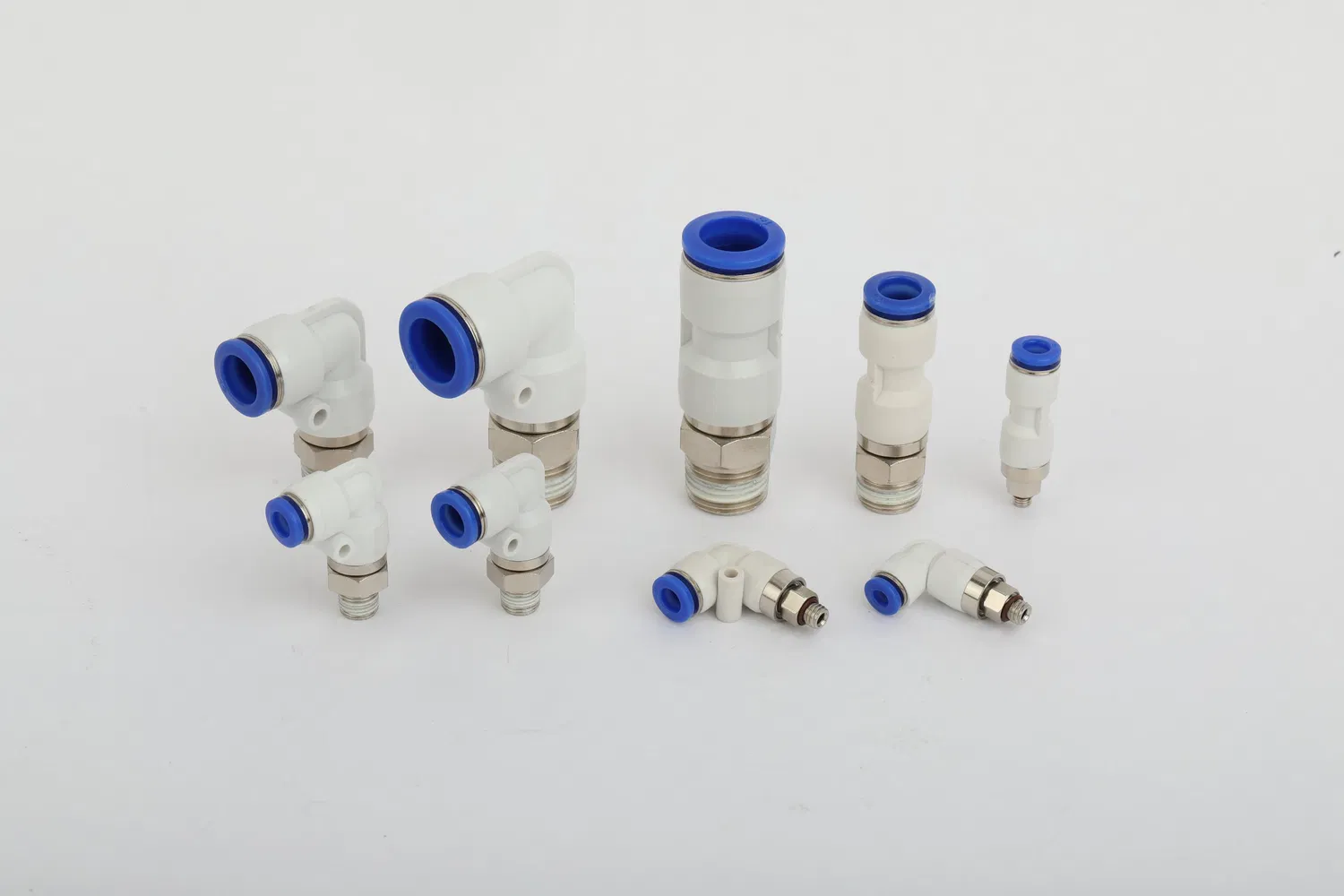 The push-to-connect design enables tool-free installation while maintaining a secure grip on air hoses. Available in multiple configurations including straight, elbow, and tee styles to accommodate various plumbing layouts.Standard sizes range threads with smooth bore designs for maximum airflow efficiency.