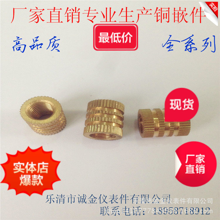 M3铜嵌件注塑滚花铜螺母厂家批发 通孔盲孔铜卡件直销现货